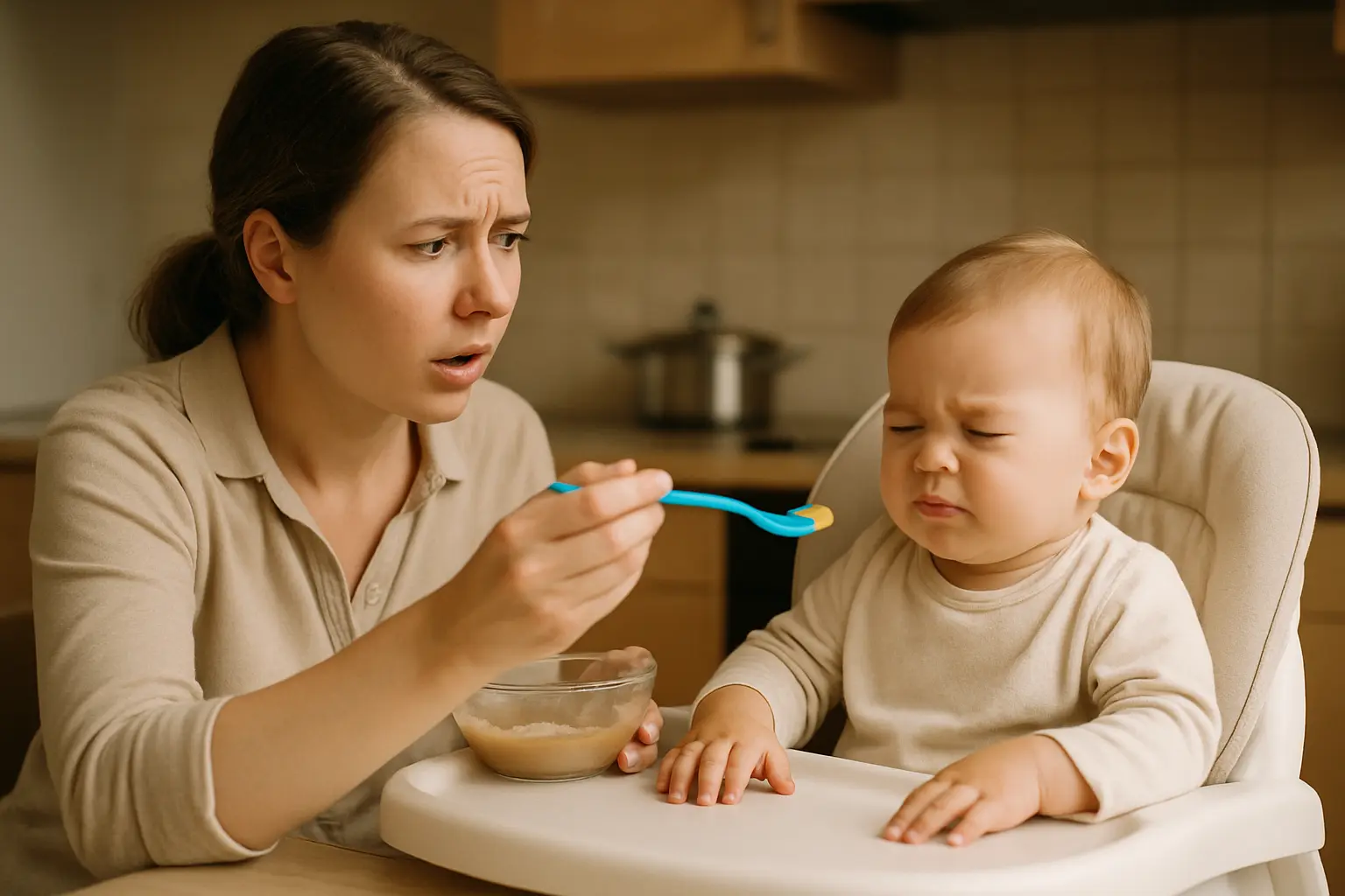 If your baby refuses to eat, try not to react with pressure or frustration. Mealtime should be calm and positive. When your baby feels safe and unhurried, they are more likely to try new foods and enjoy their meals.